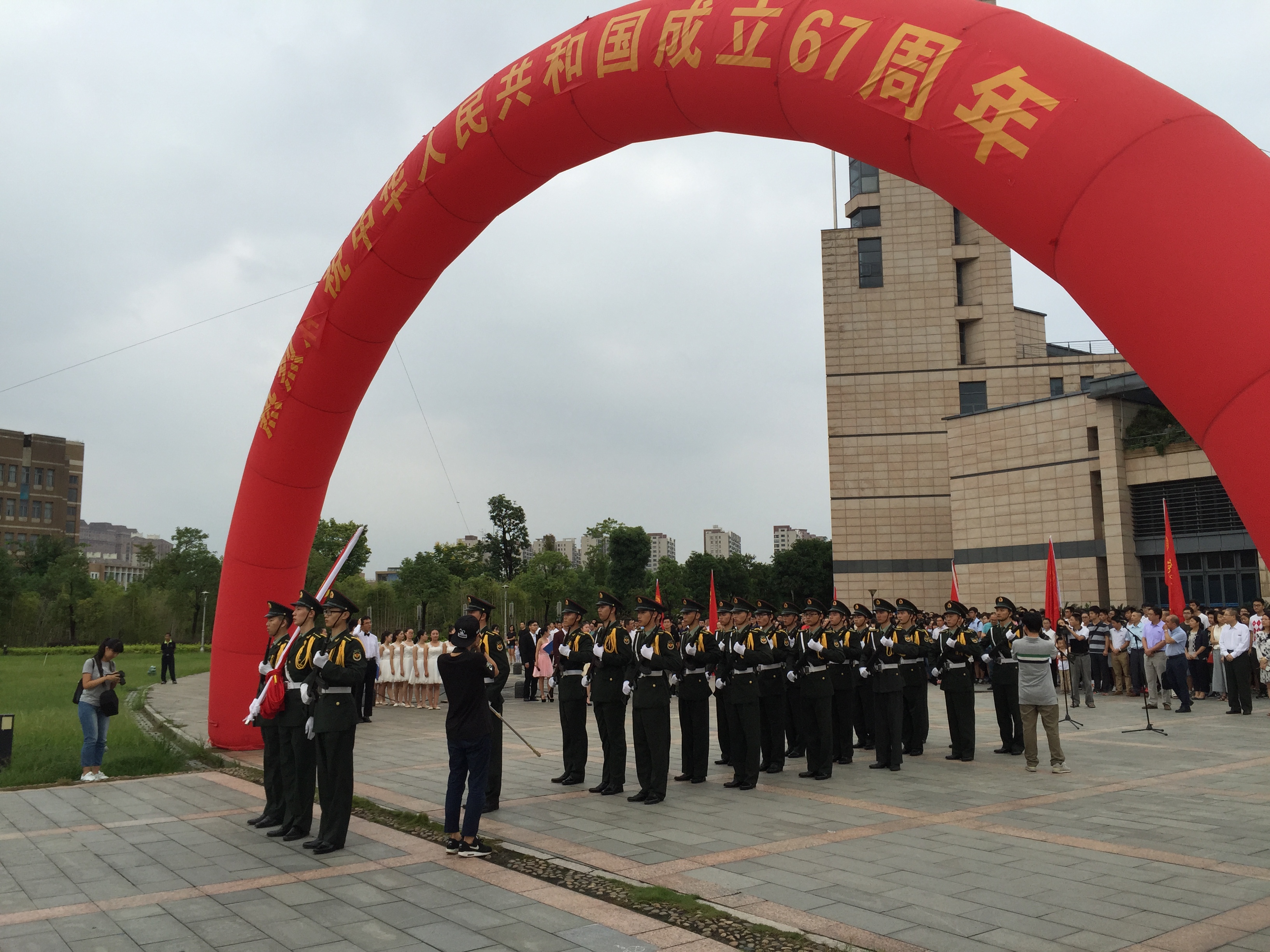 10月1日早晨,为纪念中华人民共和国成立67周年,太阳集团部分师生齐聚旗山校区福万广场,举行隆重的升旗仪式。太阳集团tcy8722党委周强副书记,院团委书记林昕老师,以刘燕老师为代表的各级辅导员及2016级外院全体新生参加了本次升旗仪式。