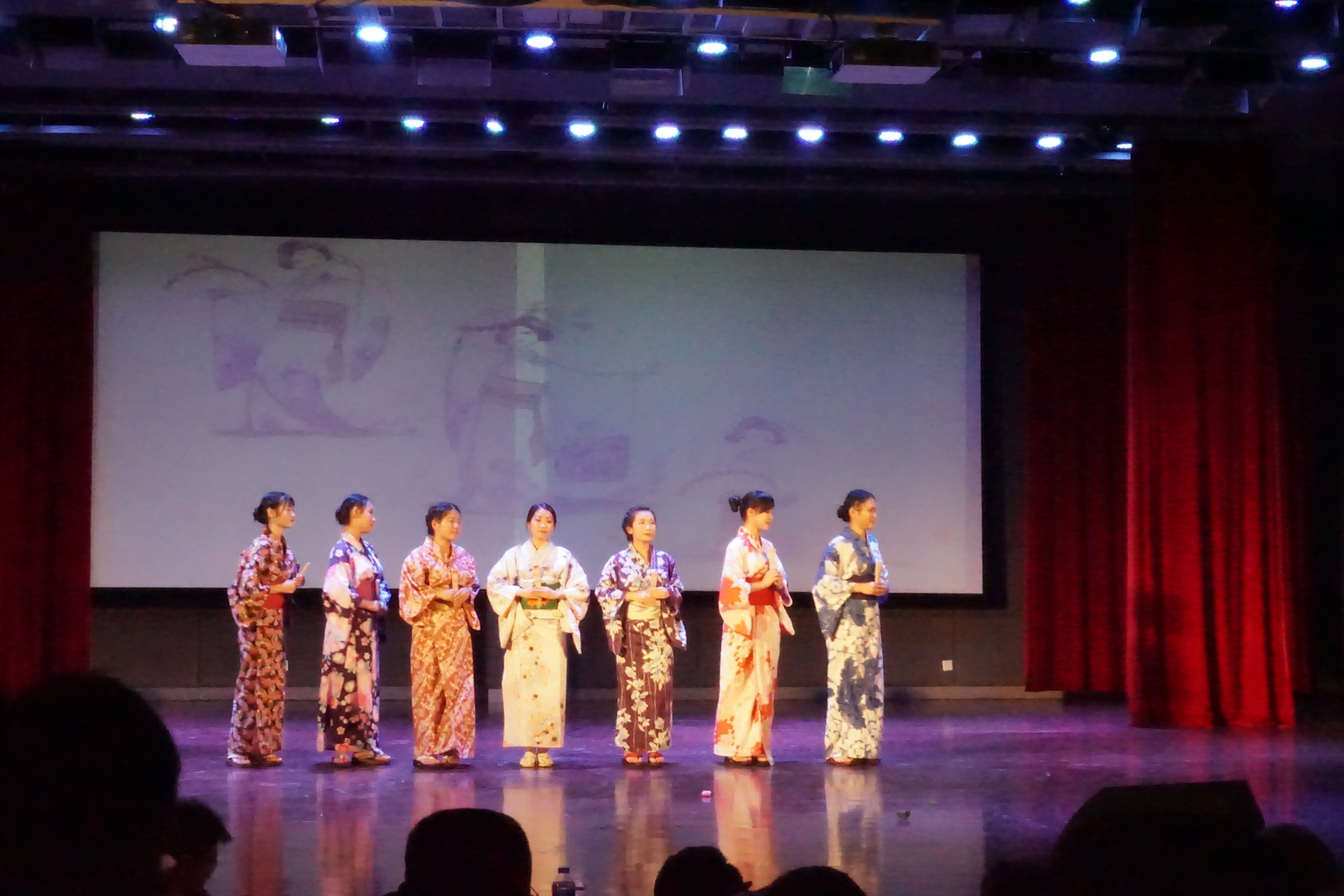 开演前,博学厅内已是人山人海。DBL带感的开场舞蹈拉开了演出的序幕,一“舞”未下眉头,一“武”又上心头。接着是富有日本精神的剑道表演,动听的日语歌曲单唱和大合唱,幽默诙谐的话剧表演,生动的配音展示,以及身穿和服跳出曼妙舞姿的伊豆舞女,日本乐器太鼓合演......美好的时光总是短暂的,随着最后的舞蹈《Heart Alamode》的结束,文化祭也画上了圆满的句号。