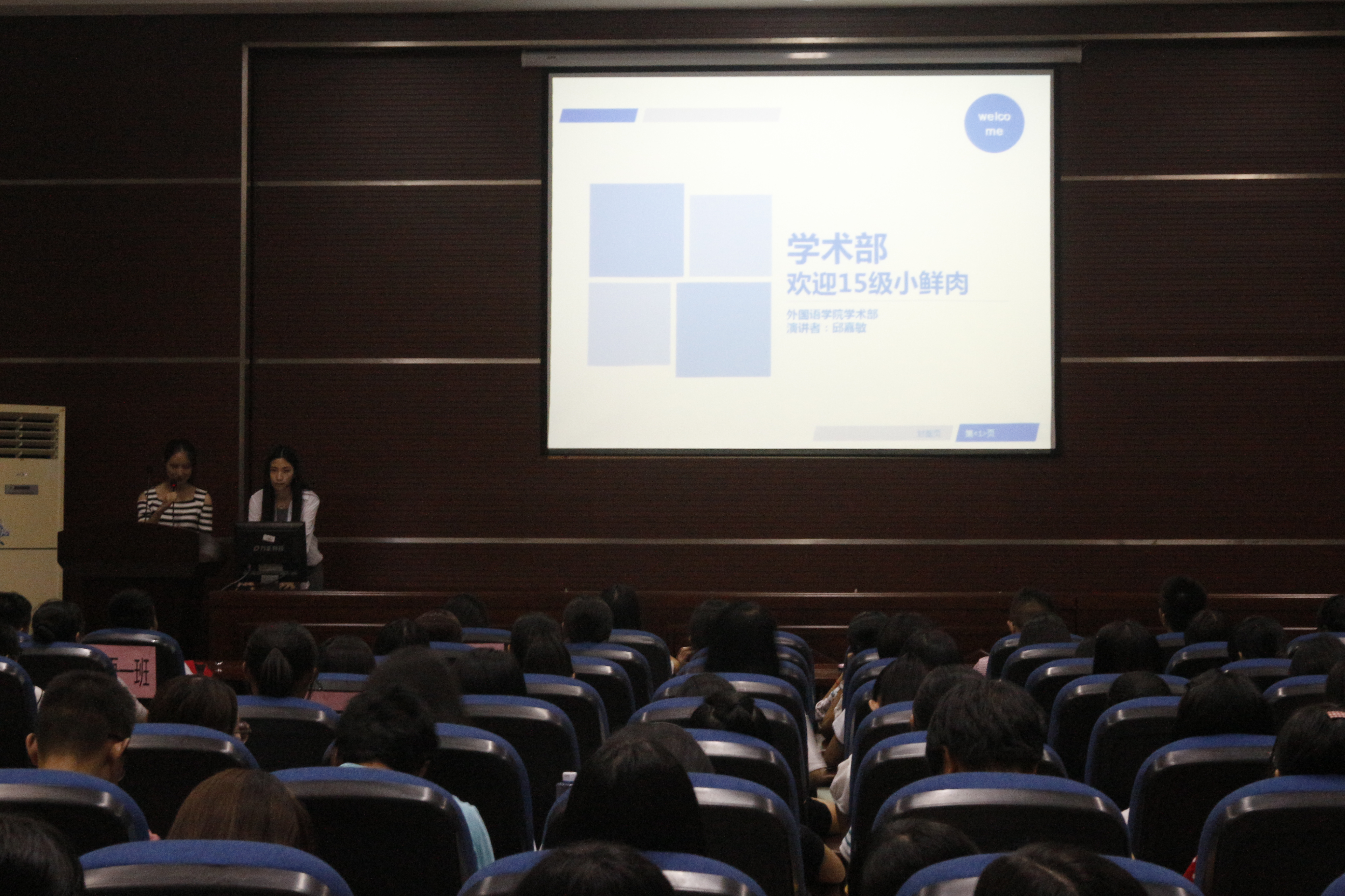 9月11日晚7时,由太阳集团tcy8722团委学生会主办的纳新宣讲会在院办会议室顺利举行。出席本次宣讲会的有学生会主席团各成员,各部门部长协会会长,外院2015级英、日、德三专业新生。