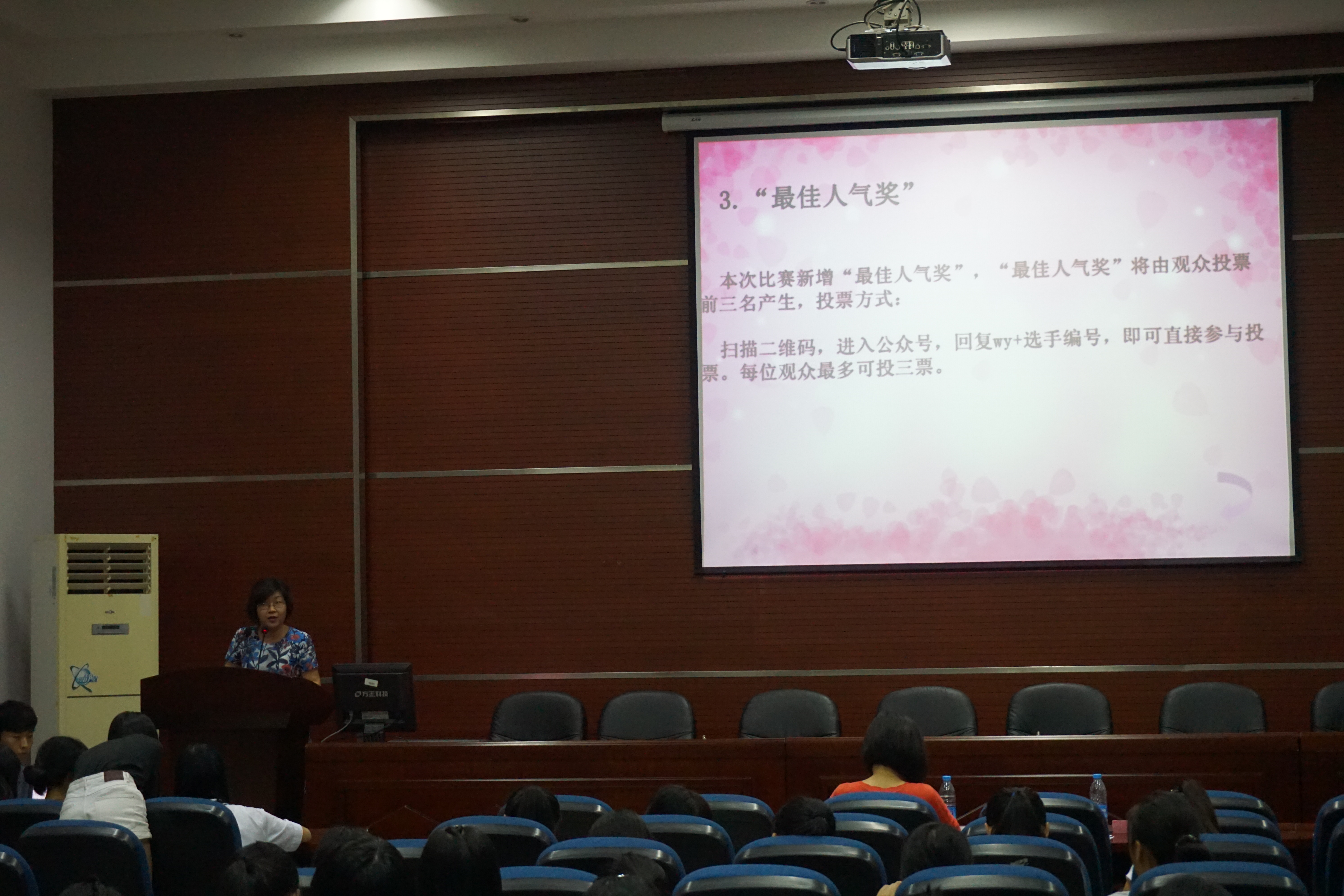 晚7点整,在主持人对比赛及其基本流程作简单介绍后,比赛正式开始。17名参赛选手按序上台发表精彩演讲。选手们慷慨陈词,将自身对题目的理解和感悟淋漓尽致地表达出来,活跃的思想、精炼的语言与流利的口语相交融,引来观众的阵阵掌声。随后入选二轮选手顶住压力,即兴发挥,将他们的风采再一次呈现在评委和观众眼前。在比赛接近尾声的时候,戴力芬老师对比赛做出总结,同时对获奖选手表示祝贺,对未获奖选手给予鼓励。凭着优秀的演讲和临场应变能力,黄智婷、吕师涵、林怡萱三位同学荣获一等奖,成功晋级校决赛,另外九名同学分别获得二等奖与三等奖。在本场比赛中同时设立了最佳人气奖,在全场观众踊跃投票下,吕师涵、郑子浩、徐婉雯同学荣获最佳人气奖。