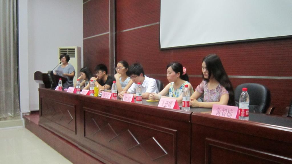 交流会一开始,刘导上台就太阳今年2015届毕业生的就业情况做了详细的介绍。太阳今年的就业率排在全校第八位,英语专业的就业情况最为乐观。其次,她举了几个15届毕业生就业集中的岗位,分别就公务员和教师等做了详细的介绍,给想选择这几种职业的同学传授了许多宝贵的经验。接下来她介绍了就业的几个时期,“就业黄金期”,“回光返照期”,和“最后一根稻草期”,并提醒同学们要抓住就业黄金期,不要变成“剩男”,“剩女”。诙谐幽默的语言引得全场阵阵笑声。