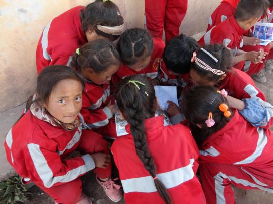 ,詹兰雪与其他来自其他高校的五名志愿者们来到此行目的地囊谦县觉拉乡第二寄宿小学,开始为期